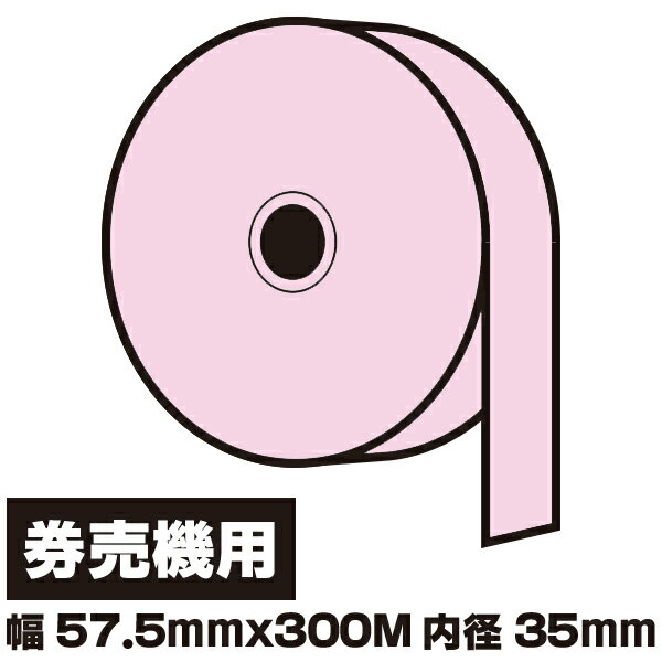 券売機 ロール紙 桃色 ミシンなし 幅57.5mmx300M 内径35mm 印字面内側(裏巻き) 1巻