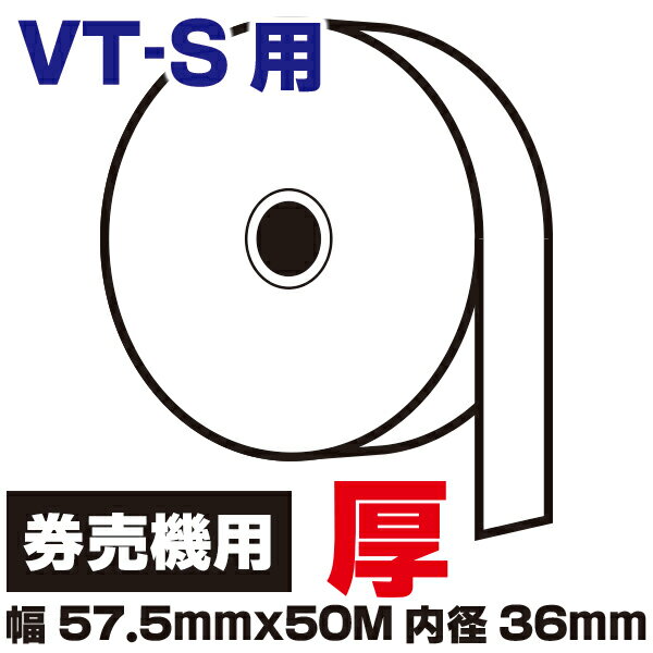 券売機 ロール紙 白色 ミシンなし 幅57.5mmx50M 内径36mm(厚) 印字面内側(裏巻き) 1巻 VT-S20用