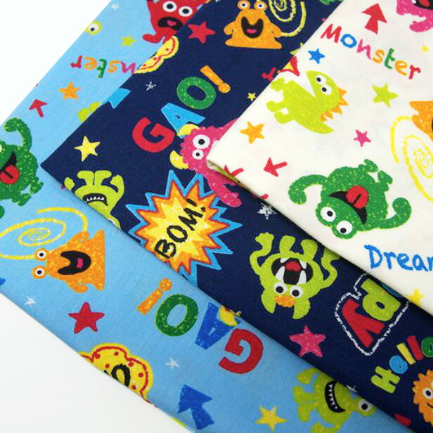 【在庫限り特別価格】日本製 ファンフィーリング モンスター 全3色 CBポプリン生地 約110cm幅 10cm単位販売 | コットン ブロード プリント モンスター 怪獣 星 カラフル ポップ 通園 通学 入園 入学 キッズ ハンドメイド 手芸 手作り NS